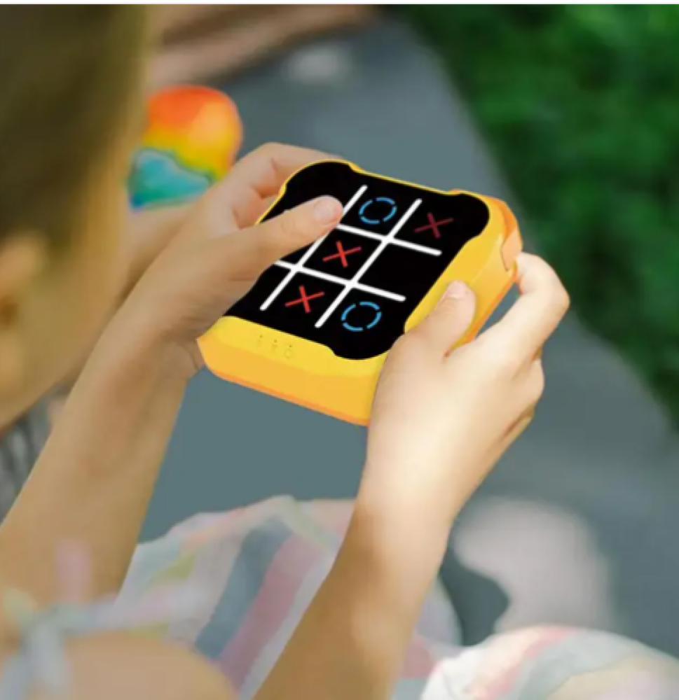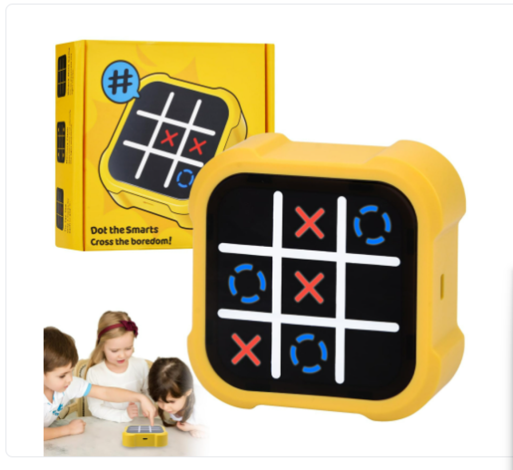 لعبه اكس او الكترونيه المحمولة باليد باللون الأصفر تجمع بين الترفيه والتعليم في جهاز صغير يناسب راحة اليد. مصممة لتعزيز التفكير الاستراتيجي والذاكرة.
